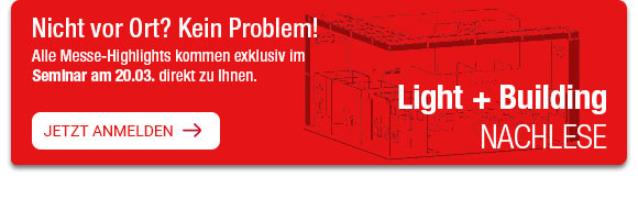 Vielen Dank, dass Sie unseren Messestand auf der Light + Building 2026 besucht haben! Unsere Neuheiten konnten Sie bereits live entdecken, für eine schnelle Übersicht haben wir hier noch einmal alle Themen kompakt zusammengefasst. Werfen Sie gerne auch einen Blick in unser Seminarprogramm, um Ihr Fachwissen aufzufrischen.