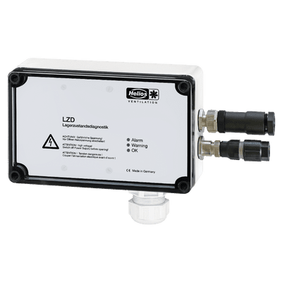 Ventilatorerweiterung zur Montage von Helios Lager-Zustandsdiagnostik LZD-Basic (LZD-Basic ist nicht im Lieferumfang von diesem Artikel enthalten). Inklusive werkseitig angebrachtem Halter an Ventilatorgehäuse, zur Aufnahme von Auswertegerät der LZD-Basic. Lager-Zustandsdiagnostik werkseitig komplett an Ventilator montiert. Für einfachste kundenseitige Inbetriebnahme, wird die Lager-Zustandsdiagnostik vor Auslieferung vollständig voreingestellt, auf den Ventilator individuell konfiguriert und getestet.Weitere Daten und Zubehör