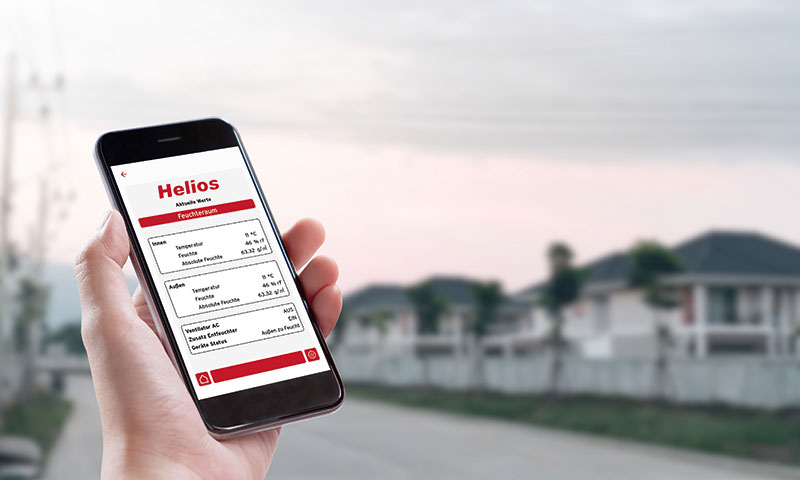 Das Helios System zur Feuchte-Differenz-Regelung können Sie ganz einfach und zuverlässig mit einer App auf dem Smartphone oder einem Tablet einstellen.