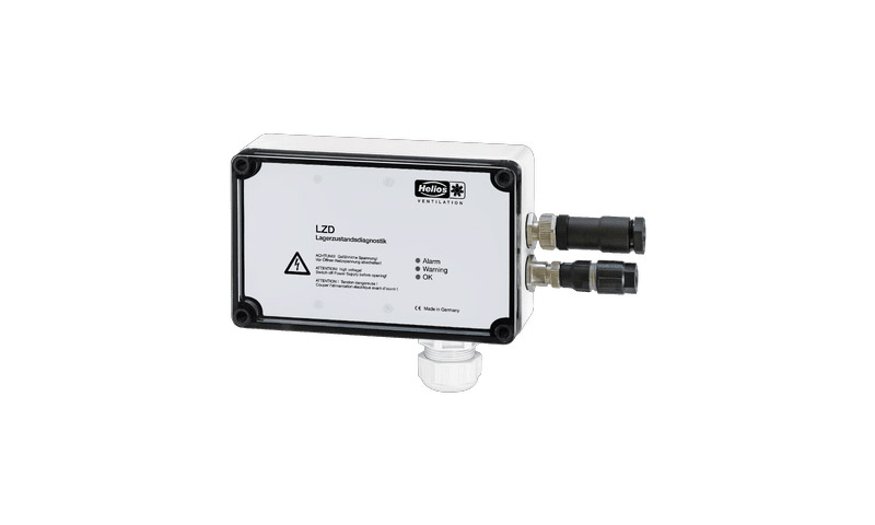 Die Helios Lager-Zustandsdiagnostik ist in zwei Varianten erhältlich: Die Basisversion (LZD-Basic), die sich auch bei bestehenden Ventilatoren nachrüsten lässt, konzentriert sich auf die Erfassung der Schwingungswerte. Die erweiterte Version (LZD-Comfort) überwacht zusätzlich den Zustand des Lagerfetts anhand der Lagertemperaturen. Beide Varianten wurden speziell für direkt am Netz betriebene Brandgasventilatoren entwickelt und bieten passende Lösungen für unterschiedliche Betriebsbedingungen.